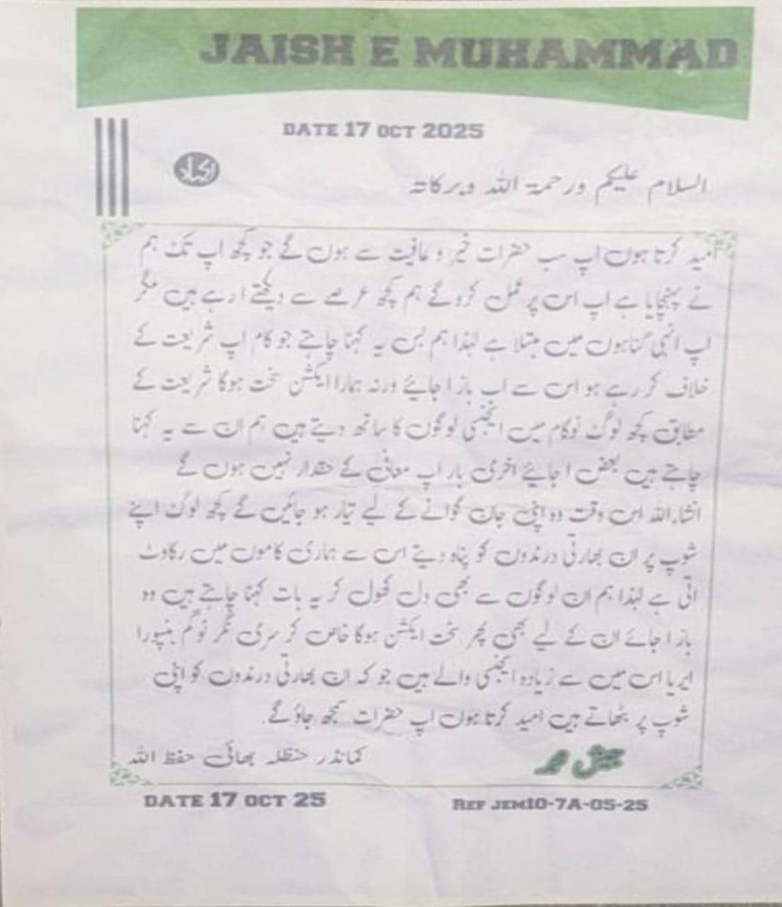 Following Sinha’s directive, the Jammu and Kashmir Police, led by Srinagar SSP Sandeep Chakravarty, intensified their investigation. An FIR was filed against unknown persons on October 19. CCTV footage from the Nowgam area revealed three youths pasting the posters: Arif Nisar Dar alias Sahil, Yasir-ul-Ashraf, and Maqsood Ahmed Dar, all residents of Nowgam.
